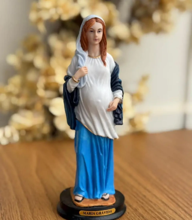 Imagem de Nossa Senhora Grávida, símbolo de amor, esperança e confiança em Deus. Ideal para devoção, oração e ambientes religiosos, especialmente para gestantes e famílias.